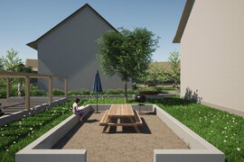 Besonderes Augenmerk liegt auf dem gestalteten Garten, welcher als Treffpunkt und Erholungsraum für die Anwohnerinnen und Anwohner dienen wird. Diese öffentliche Initiative verwandelt die einstige Brauerei, über 200 Jahre später, wieder in ein lebendiges Zentrum von Otelfingen.