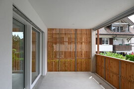 Alle Sitzplätze und Balkone sind durch die darüberliegenden Etagen oder Dachkonstruktionen abgedeckt, sodass die Bewohnerinnen und Bewohner bei milderen Temperaturen geschützt im Freien verweilen können.