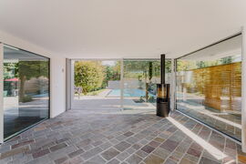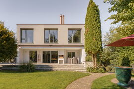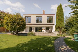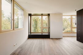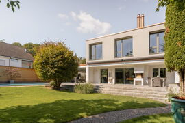Der Umbau sieht den Erhalt des Unter- und Erdgeschosses vor, während das Dachgeschoss komplett entfernt wird. Das neue Obergeschoss wird als Holzbau gestaltet und erhebt sich über dem bestehenden Erdgeschoss. Der leicht ausgestaltete Pavillon im Erdgeschoss lässt den Wohnbereich mit dem Garten dank rahmenlosen Verglasungen harmonisch verschmelzen.