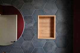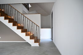Die bestehende Bausubstanz aus dem Jahr 1983, bestehend aus einem Untergeschoss und den darüber liegenden Wohn- und Schlafräumen, wird einer umfassenden Transformation unterzogen. Die privaten Bauherren wünschen sich ein zusätzliches Dachgeschoss für weitere Wohnzwecke. Das derzeitige Erdgeschoss mit dem darüberliegenden Satteldach wird vollständig abgerissen. Das zukünftige Erd- und Dachgeschoss behalten die ursprüngliche Grundrissform bei.Der Wohnraum wird durch großflächige Fensterfronten im Wohn- und Essbereich geprägt, was eine großzügige Wohnsituation schafft. Das Dachgeschoss wird zukünftig als Rückzugsort für die Schlafräume genutzt. Die Außenfassade wird mit einem hellen Besenstrichputz versehen. Die Fenster erhalten eine dunkle Farbgestaltung und das Dach wird mit Flachschiebeziegel eingedeckt.