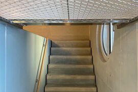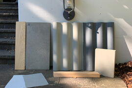 Die Außenhaut ist mit Well-Eternit verkleidet, während die Sockelakzentuierung mittels breitmaschigen Wellplatten erfolgt ist. Die sanft gewölbte Oberflächenstruktur spiegelt den Zeitgeist der Bewegung wider und verleiht den Gebäuden eine einladende Lebendigkeit.