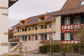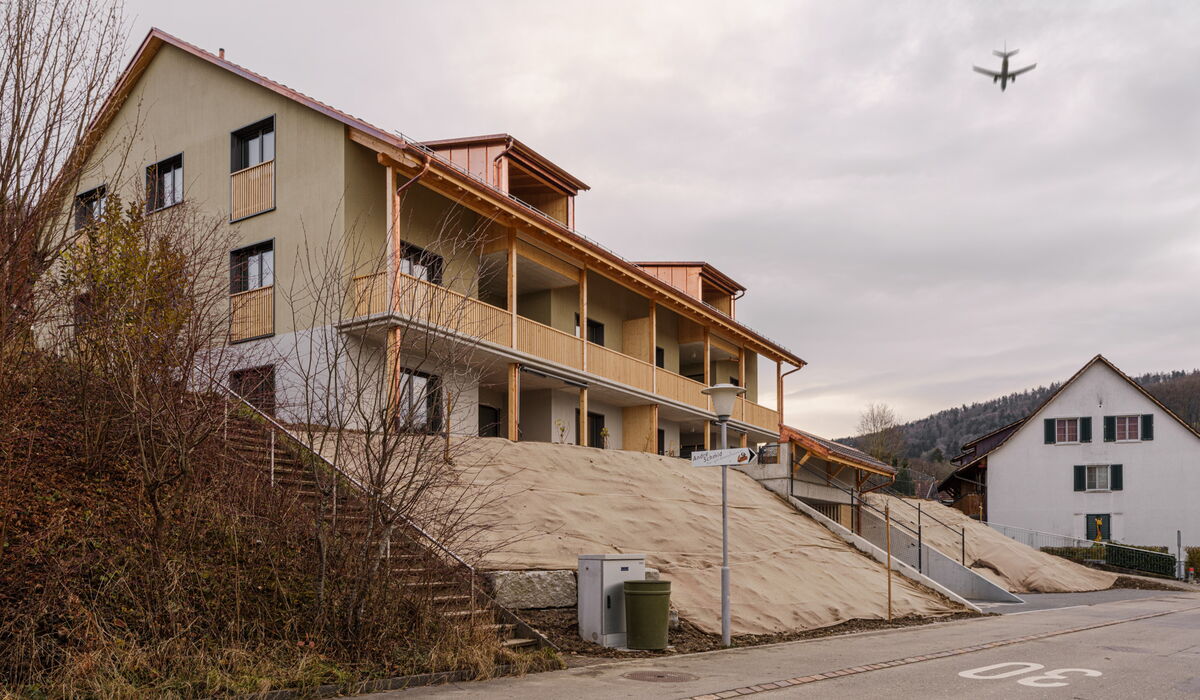 Der Neubau befindet sich im Herzen der Kernzone der Gemeinde Weiach. Aufgrund der steilen Topografie wurde eine Lösung gesucht, die sich durch eine zurückhaltende architektonische Gestaltung auszeichnet. Der Neubau soll sich nahtlos in die historische Kernzone von Weiach einfügen, ohne dabei großes Aufsehen zu erregen. Dabei greift er verschiedene Elemente der Kernzone auf.