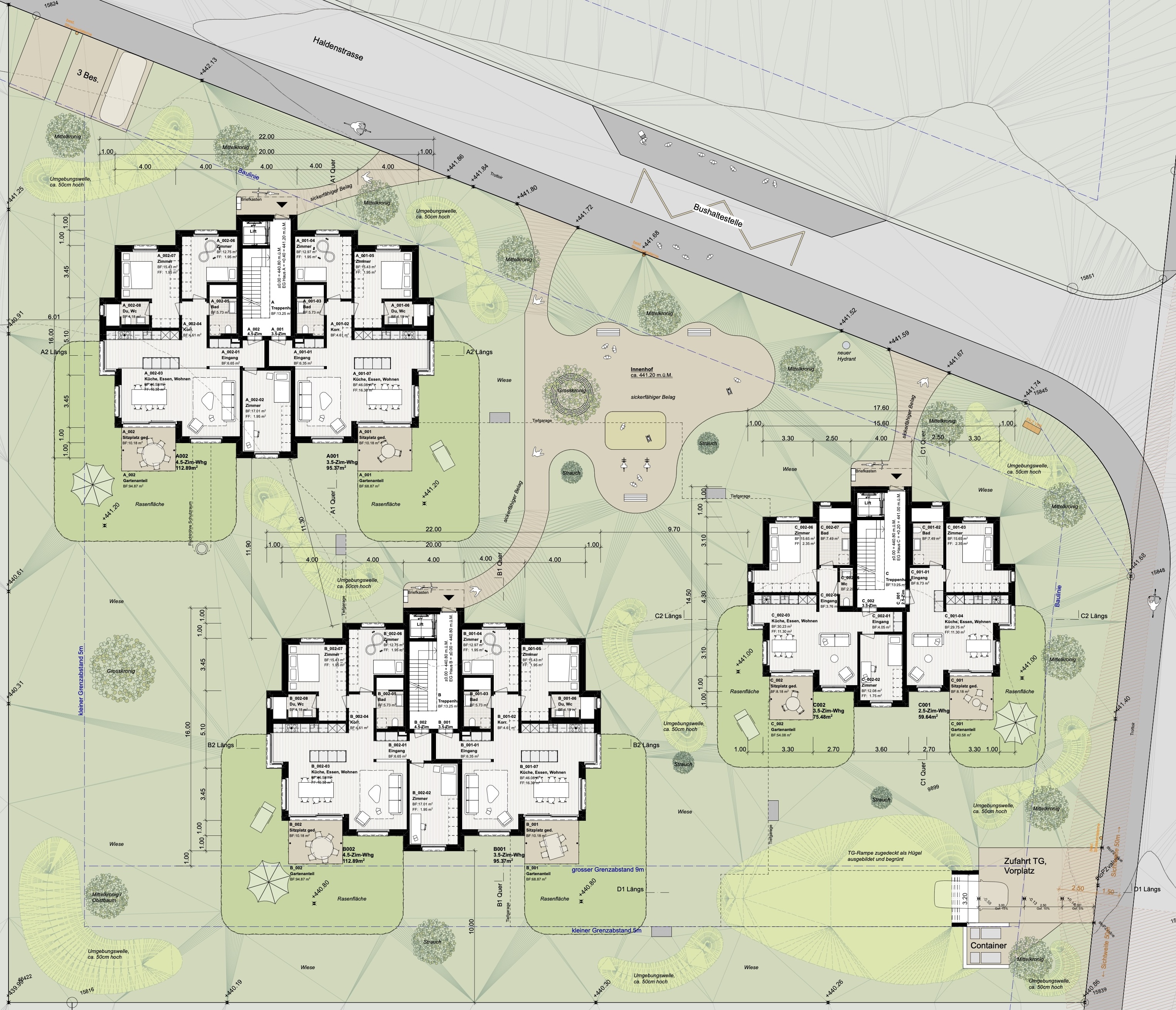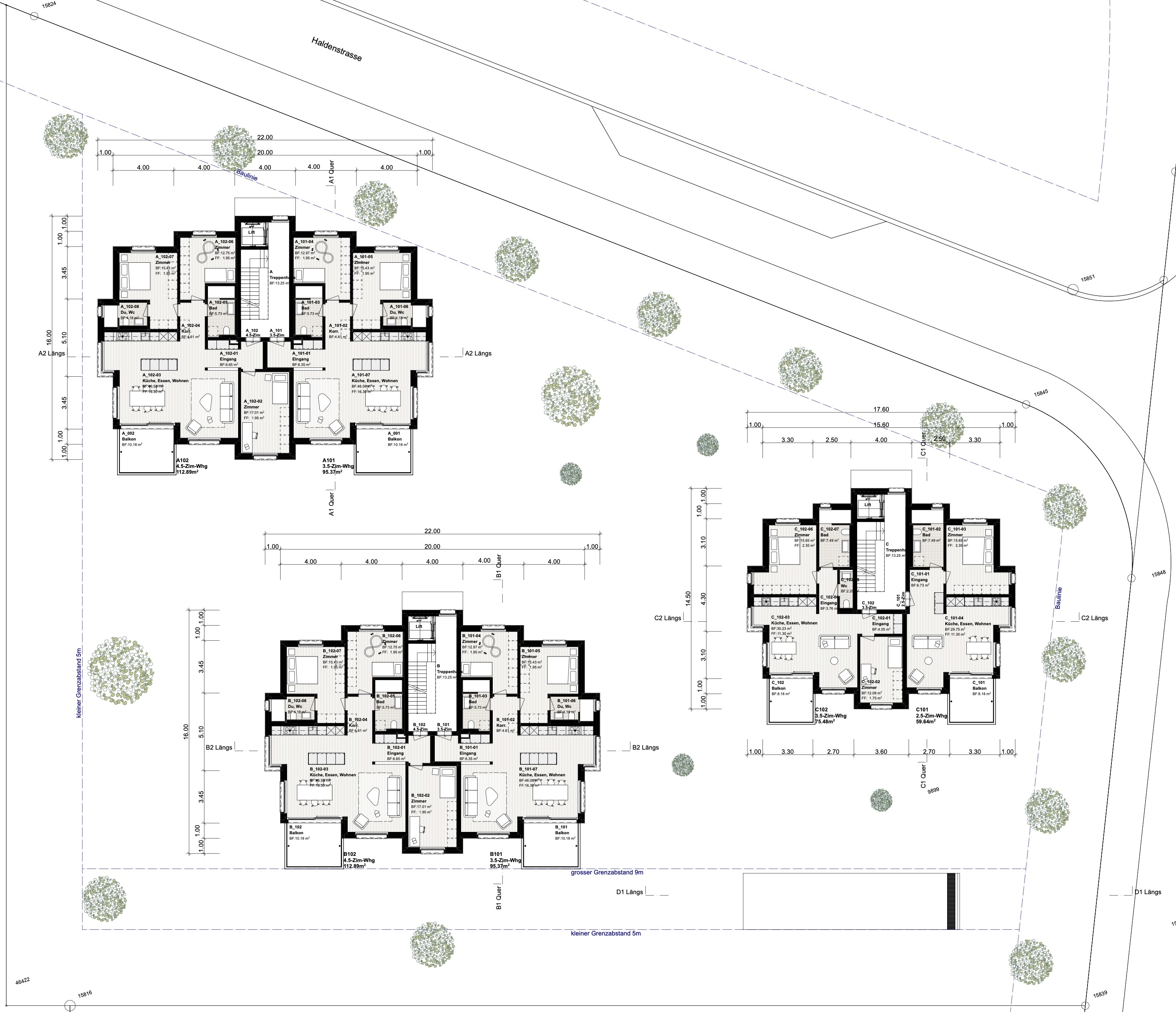 Das Vorhaben umfasst die Entwurfsplanung bis und mit Realisierung einer Wohnüberbauung mit drei Mehrfamilienhäusern. Ziel ist die Schaffung von hochwertigem, modernem Wohnraum in einer klar strukturierten und großzügig gestalteten Gesamtanlage. Die Überbauung verbindet individuelle Architektur mit gemeinschaftlichen Freiräumen und bietet ein vielfältiges Wohnangebot für unterschiedliche Altersgruppen.