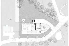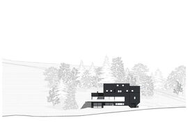 Das Haus besteht aus drei aufeinanderfolgenden Volumina, deren unterschiedliche Dimensionen an eine natürliche Steingruppe am Hang eines Hügels erinnern. Um das Haus zu einem zusammenhängenden Ganzen zu formen, werden die drei Körper mit einer vorgehängten Natursteinfassade verkleidet.