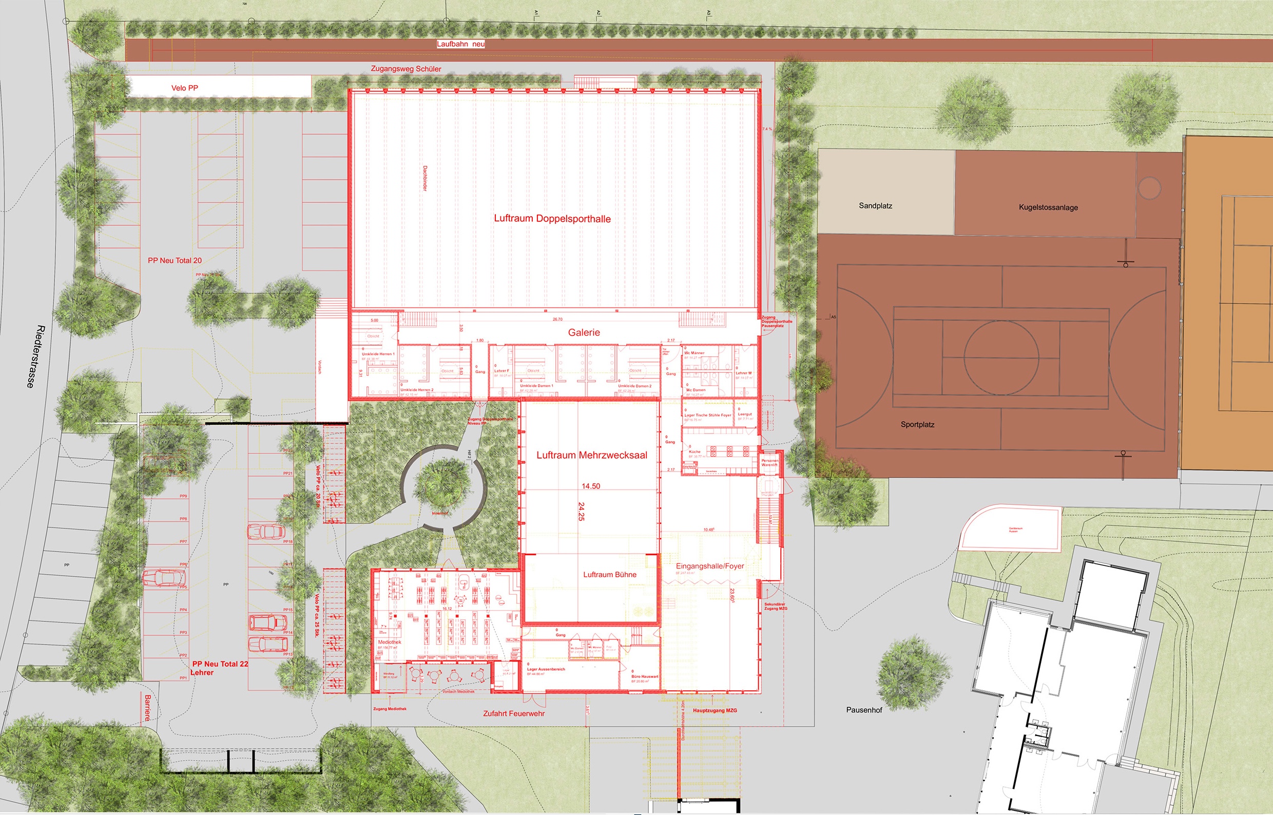Etappe 1 – Doppelsporthalle und Aussenraumgestaltung